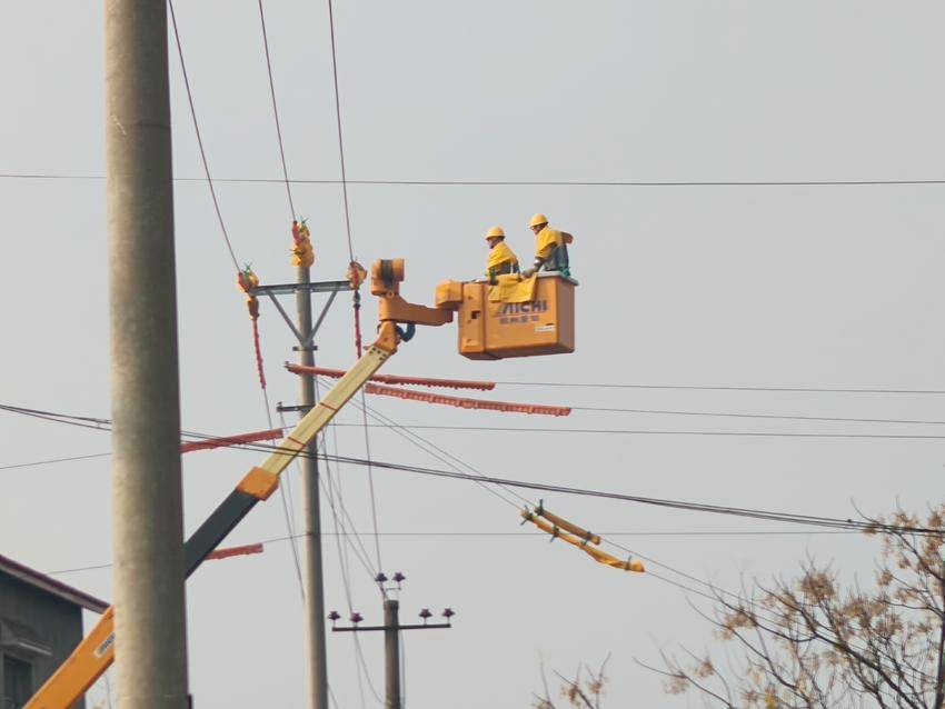 随后,施工人员迅速投入到紧张的中、低压线路迁改工作中。他们头戴安全帽,专注地操作着工具,有的拆解旧线路,有的搬运新设备,配合默契。尽管冬日寒风凛冽,可他们的额头却渐渐沁出细密的汗珠。