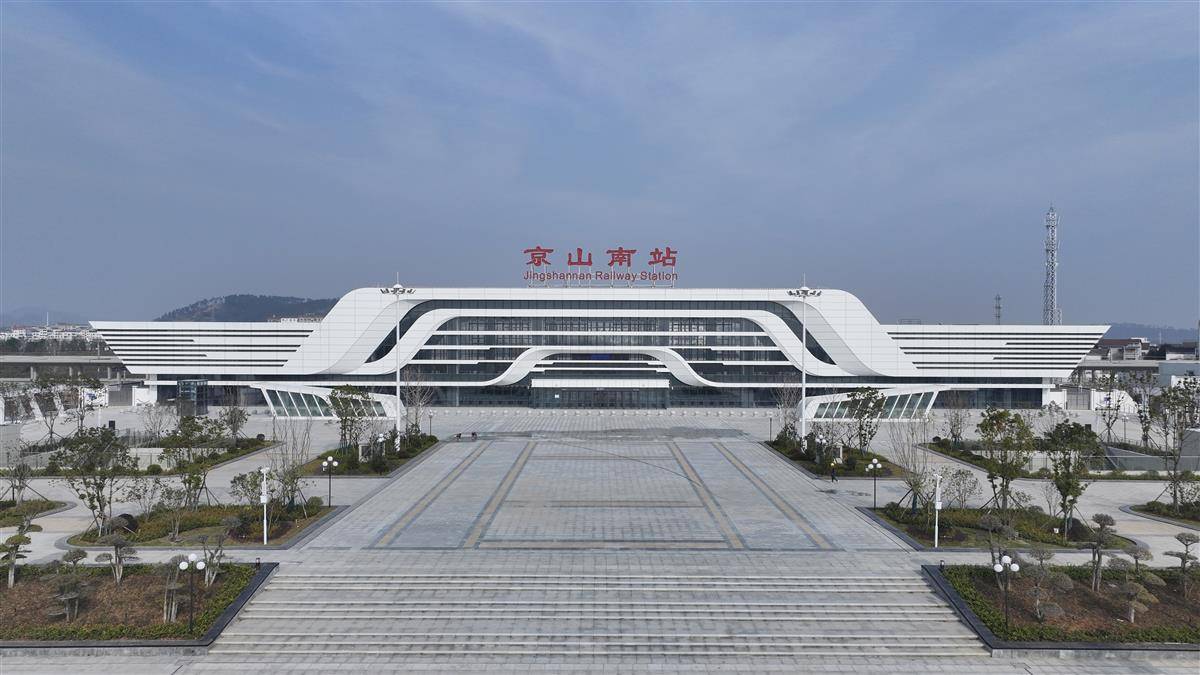 走进京山南站,仿佛撞入“观鸟天堂”。三层流线造型如鸟儿舒展的羽翼,抽象化的“京”字藏身建筑之中,轻盈又富有诗意。