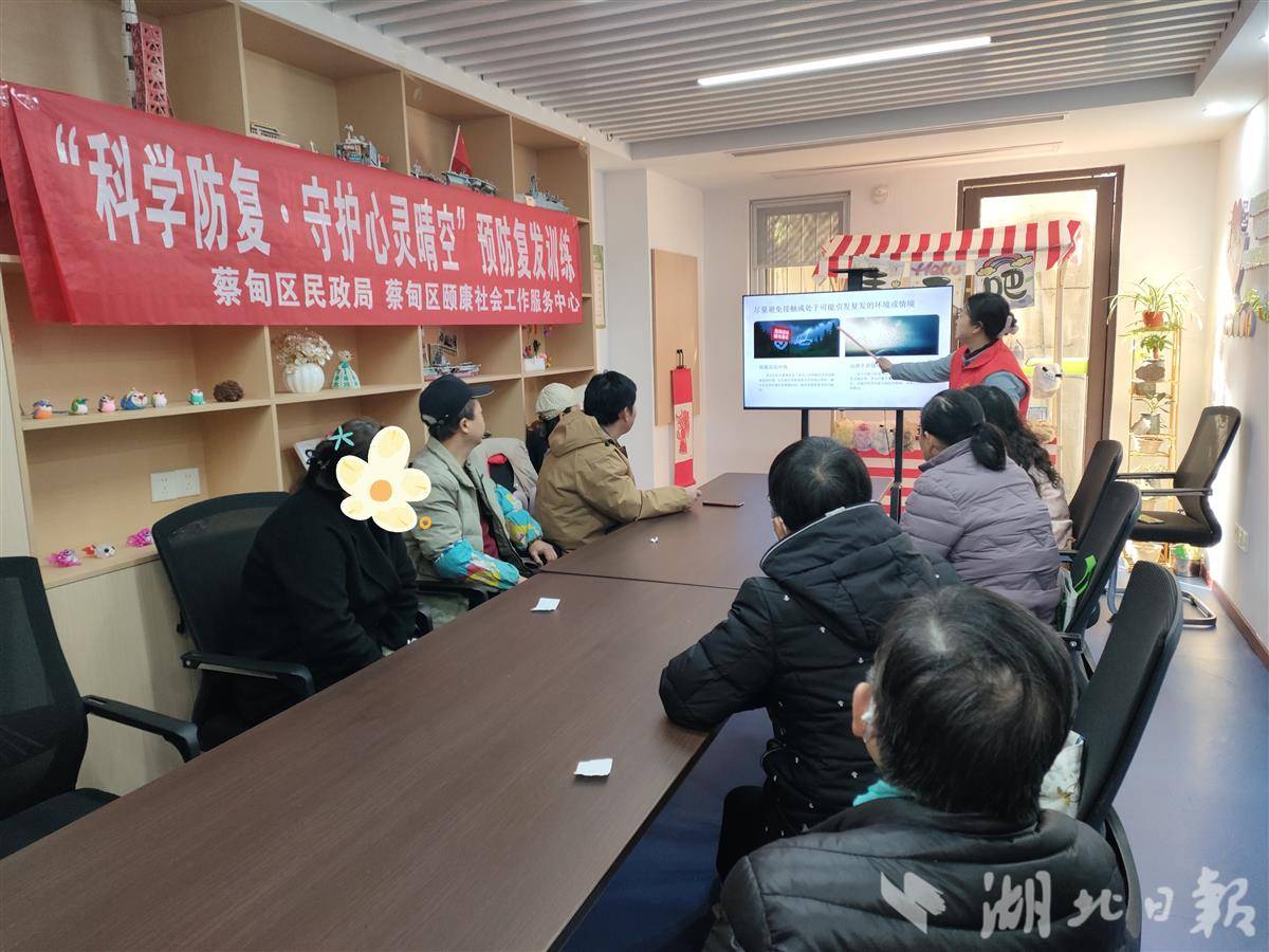 湖北日报讯(记者方琳、通讯员钟盼)12月17日,蔡甸街道阳光心灵康复中心内,举办了一场面向精神障碍康复者及其家属的预防复发训练活动。在蔡甸区民政局的支持下,这场活动以“科学防复•守护心灵晴空”为主题,通过知识讲解与互动分享,为参与家庭带来实用支持和温暖陪伴。