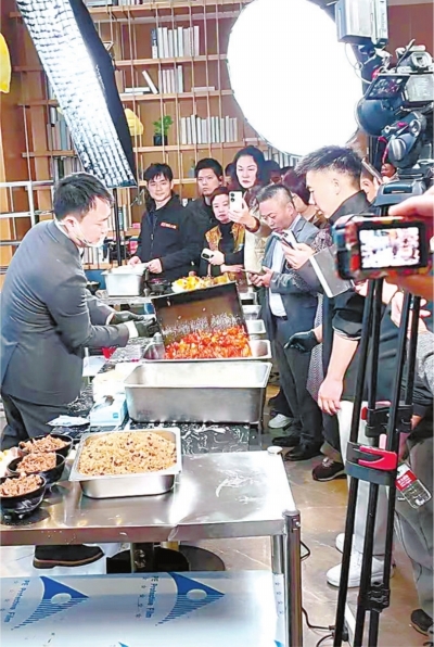 魏胜军带领团队直播开发新菜品。