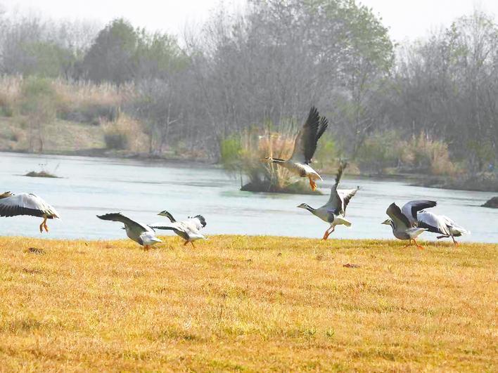 “高原精灵”斑头雁首现襄阳。(湖北日报通讯员 齐彭彭 摄)