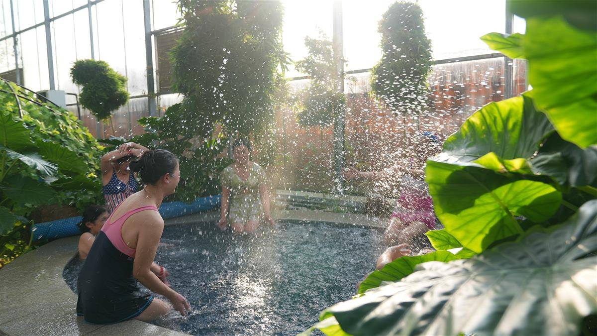 游客在落花潭温泉度假村嬉戏。(通讯员 钟军 摄)