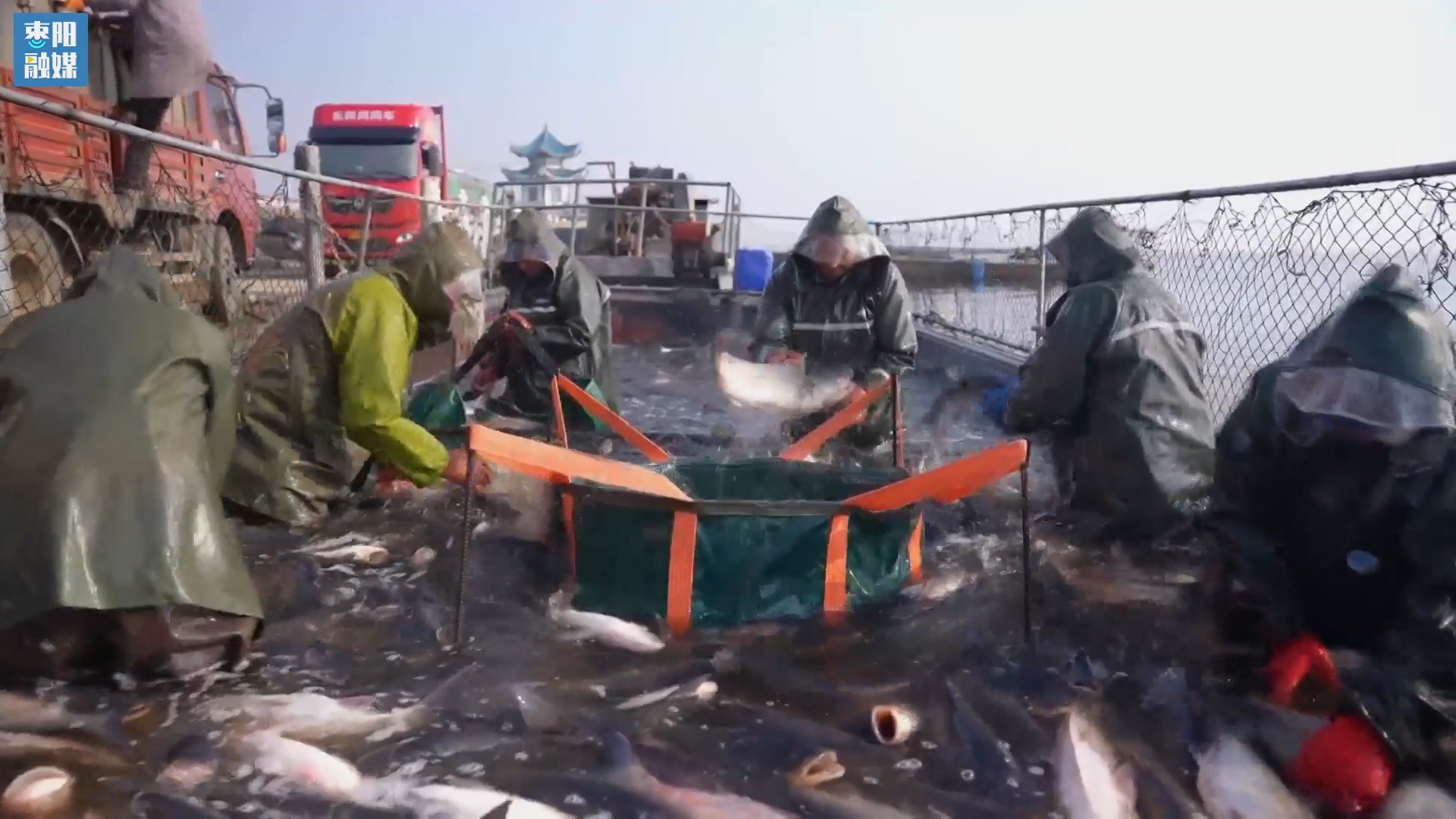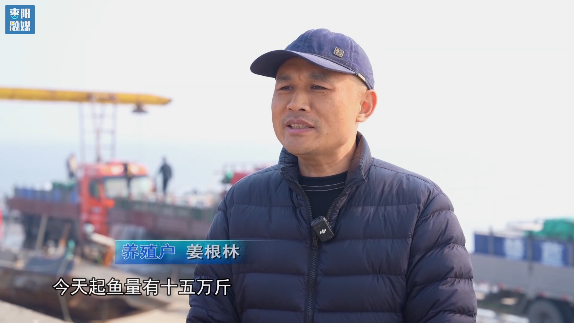 养殖户姜根林:今天起鱼量有十五万斤,最大的(鱼)20多斤。每年年末,我们都有起鱼这个习俗,也就是“打年鱼”,格外热闹,就像过年一样。
