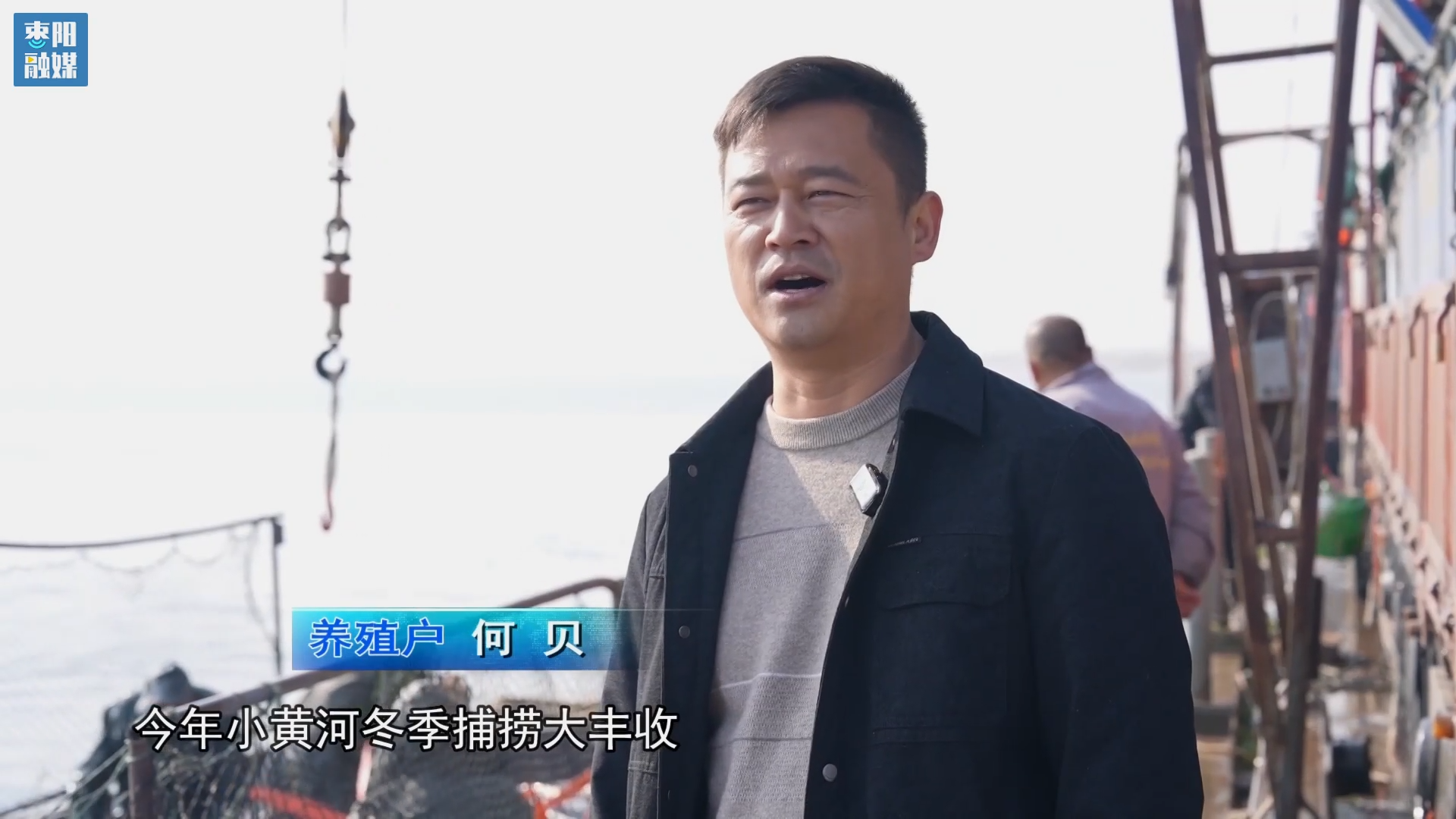 养殖户何贝:今年小黄河冬季捕捞大丰收,虽然过程很辛苦,但是看到这么多的鱼货,心里高兴。
