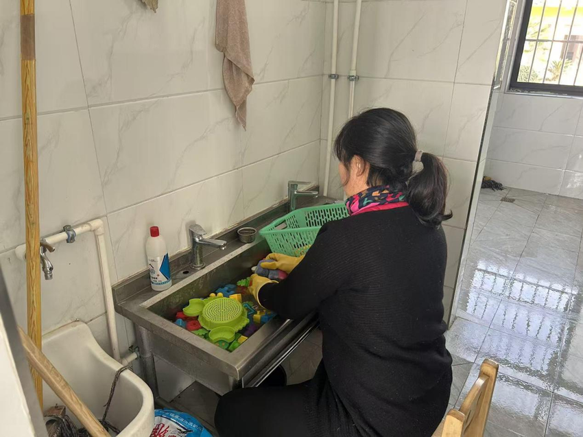 从教室的桌椅门窗、玩具绘本,到走廊的扶手栏杆、活动器械,老师们手持消毒工具,不放过任何一个卫生死角。抹布擦拭的是责任,喷雾浸润的是关怀,每一个认真俯身的身影,都在为孩子们编织一道坚实的健康防护网。