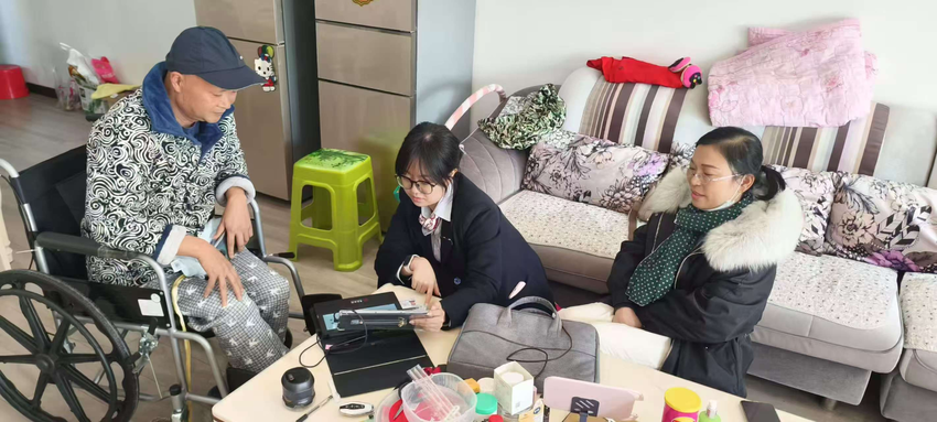 据悉,当日上午该行接到一位老年客户家属的求助,客户因身体原因常年卧病在床,且行动不便无法前往网点办理银行卡相关业务,家属为此十分焦急。了解情况后,中行沙洋支行高度重视,第一时间启动特殊客户上门服务机制,安排两名经验丰富的员工携带移动智能终端、身份证读卡器等设备,驱车前往客户家中提供便利服务。