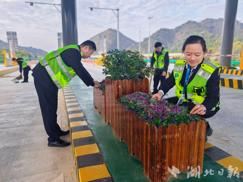 为了让节日氛围更浓厚,大家特意在安全岛重新栽种了色彩鲜艳的鲜花,精心打理每一株花苗,浇水、培土,动作细致入微。当一簇簇鲜花在冬日里绽放生机,整个收费站瞬间变得靓丽起来,成为高速路上一道温馨的风景线。