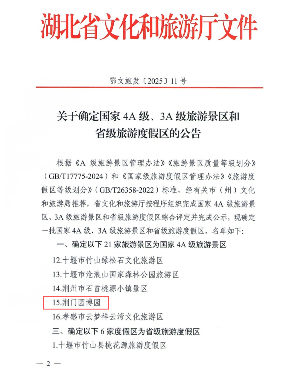 岁末将至,喜讯传来!12月19日,湖北省文化和旅游厅发布公告,荆门园博园正式获评国家 4A 级旅游景区!这份“国字号”荣誉,是对这片山水园林的最高褒奖。
