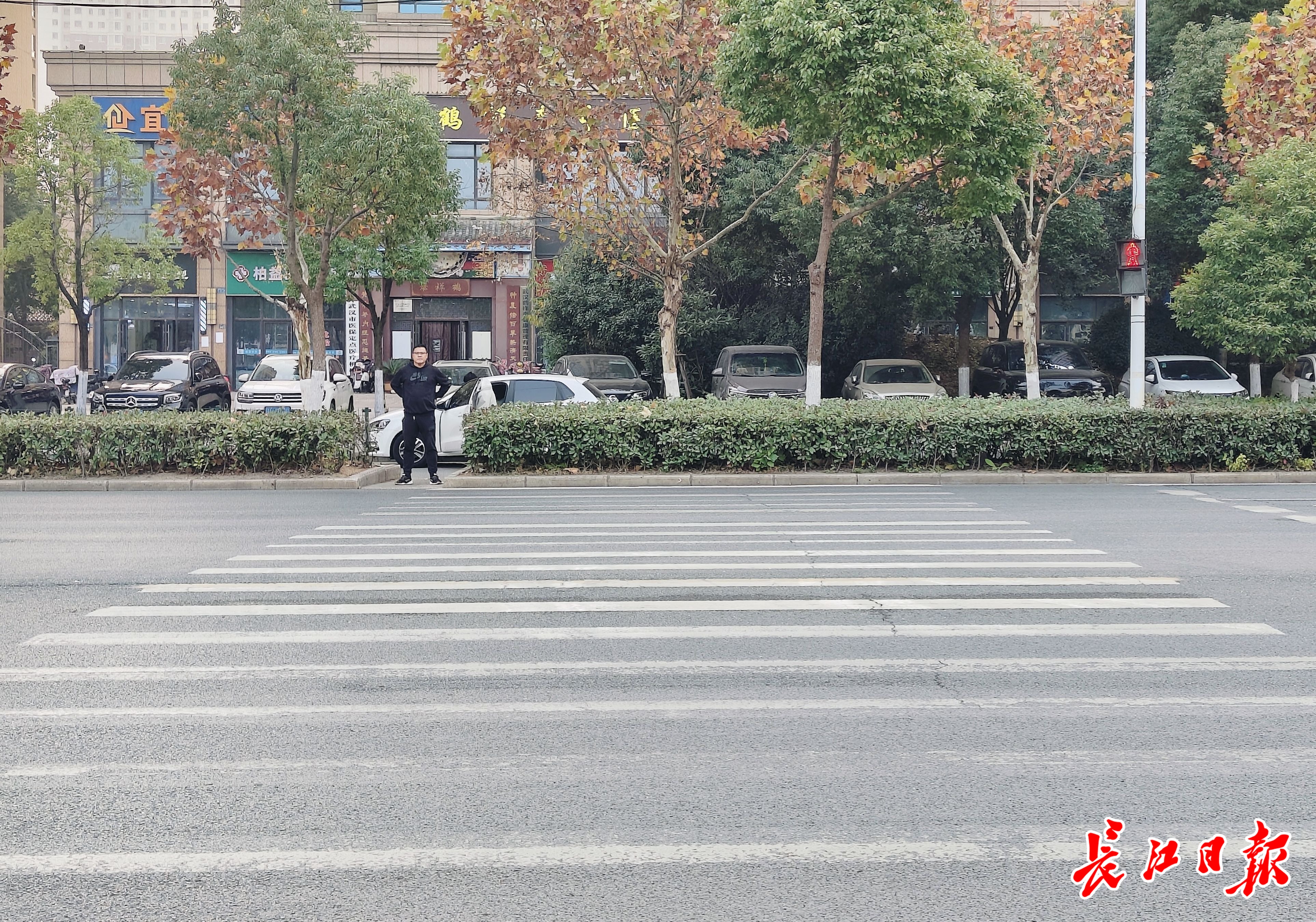 采访中,家住黄陂区F天下小区的张女士告诉记者,小区门口的这条斑马线是后面画的,而绿化带早就有了,“可能是相关部门了解我们的通行需求,所以特地来画的斑马线,但是不知道为何不拆除绿化带开个口子”。