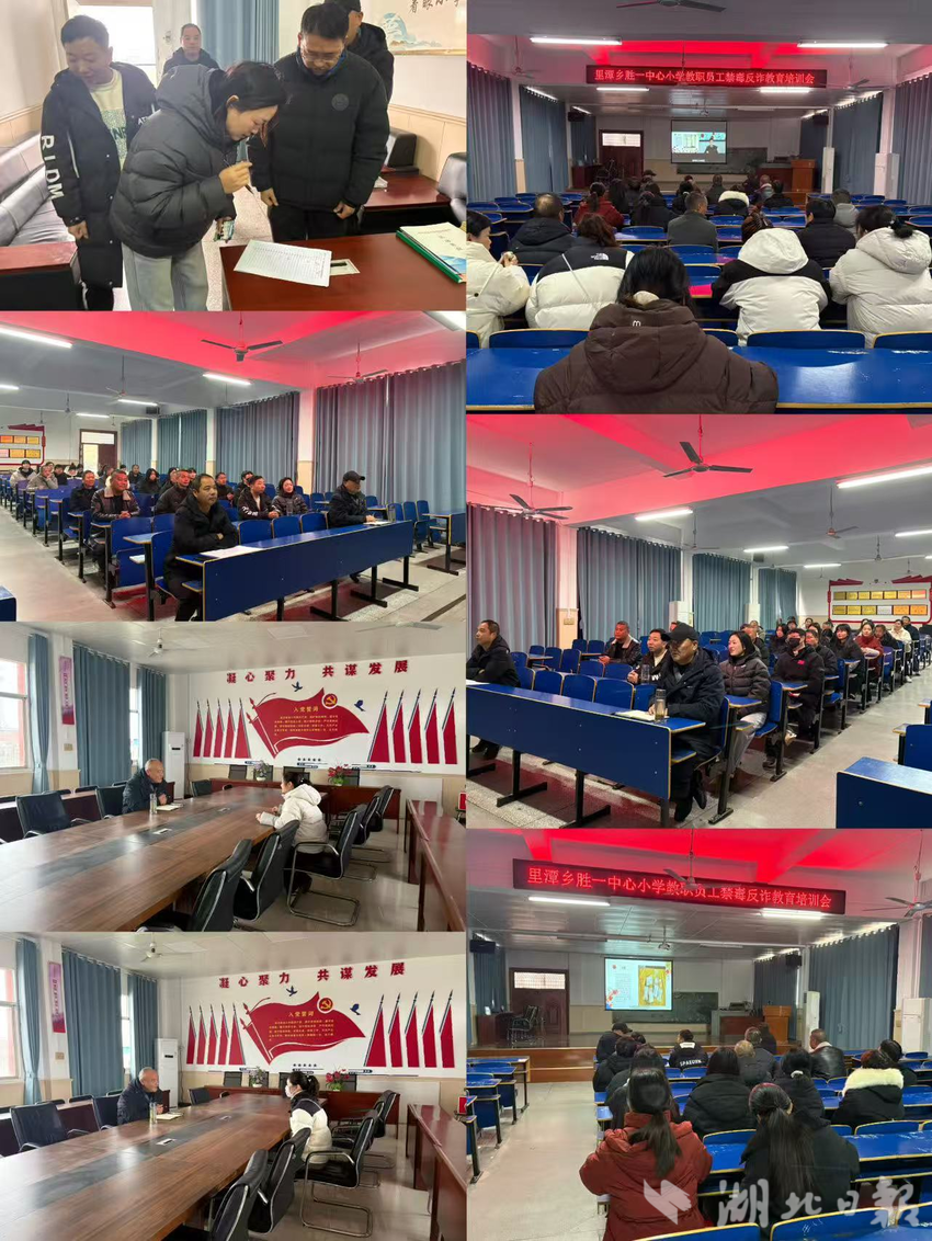 湖北日报客户端讯(通讯员周颖)为切实提升教职工安全防范意识与育人责任感,近日,汉川市里潭乡胜一中心小学创新形式,组织全体教职工开展了一场深刻的“禁毒+反诈”专题教育活动。