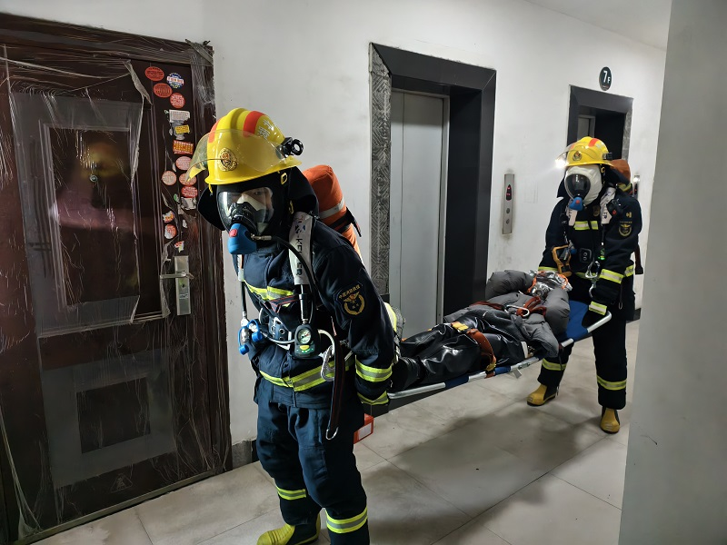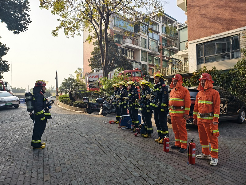 演练前,在单位负责人的带领下指战员对小区消防控制室、建筑结构、消防设施、安全出口、疏散楼梯、消防通道、水源等情况进行了熟悉检查。随后,根据灭火救援预案设定开展实战演练,全体消防救援人员紧扣实战标准与作战需求,开展火情侦察、高层持续供水、纵深内攻搜救、登高破拆救援等核心战术战法。过程中,各小组密切配合、各负其责,圆满完成了此次演练工作。