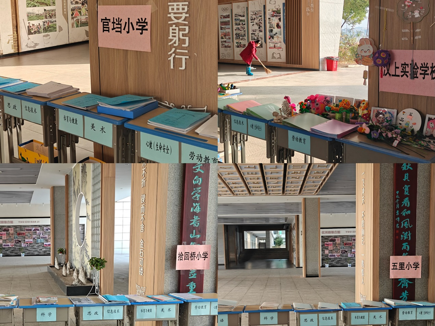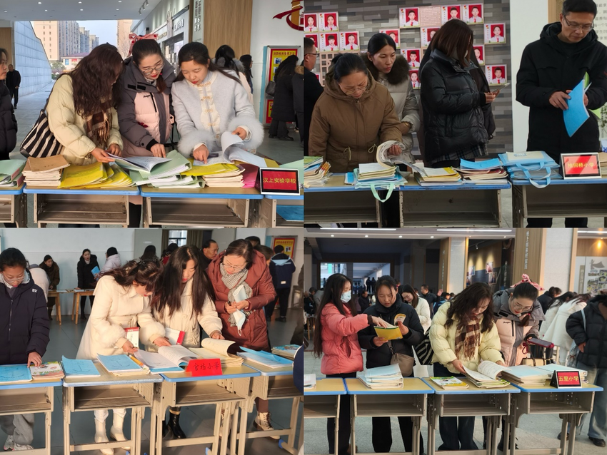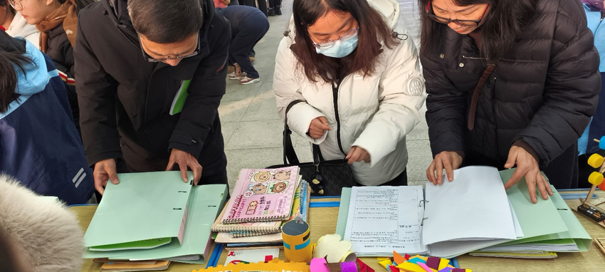 漫步展台前,汉上实验学校的常规材料尤为亮眼:备课教案书写工整如印刷体,字里行间是对知识点的精准拆解;学生作业不仅内容丰富,更透着创意巧思——劳动课的布艺香囊、科学课的风能手工、美术课的剪纸贴画,件件都是“指尖上的教育”。老师们俯身翻阅、低声交流,时而为一份精炼的教案点头称赞,时而被一本充满童趣的手工作业逗笑,观摩现场既有“取经”的专注,更有“共鸣”的温暖。