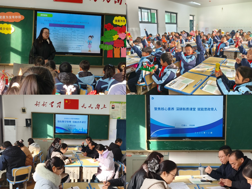 当汉水的晨曦洒满教坛,当素养的种子悄然萌发,一场以“常规”为基、以“课堂”为韵的教育交响,正在汉上教联体的沃土上徐徐奏响。为加强教学常规交流,夯实教学基础,打造素养课堂,助力青年教师、转岗教师专业成长, 12月25日,汉上实验学校教联体承办了沙洋县教研室“强化教学管理 培植素养课堂”之数学、美术、道德与法治科目系列教研活动,四校携手、同频共振,用规范的常规管理“定音”,以生动的素养课堂“谱曲”,共同谱写了一曲育人育心的教育新篇。