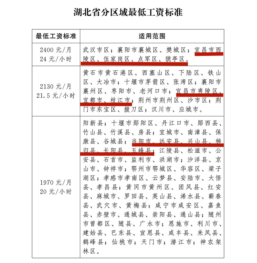 一、全日制就业劳动者月最低工资标准按区域划分为三档,依次为2400元、2130元、1970元。各档标准及适用区域见附件。