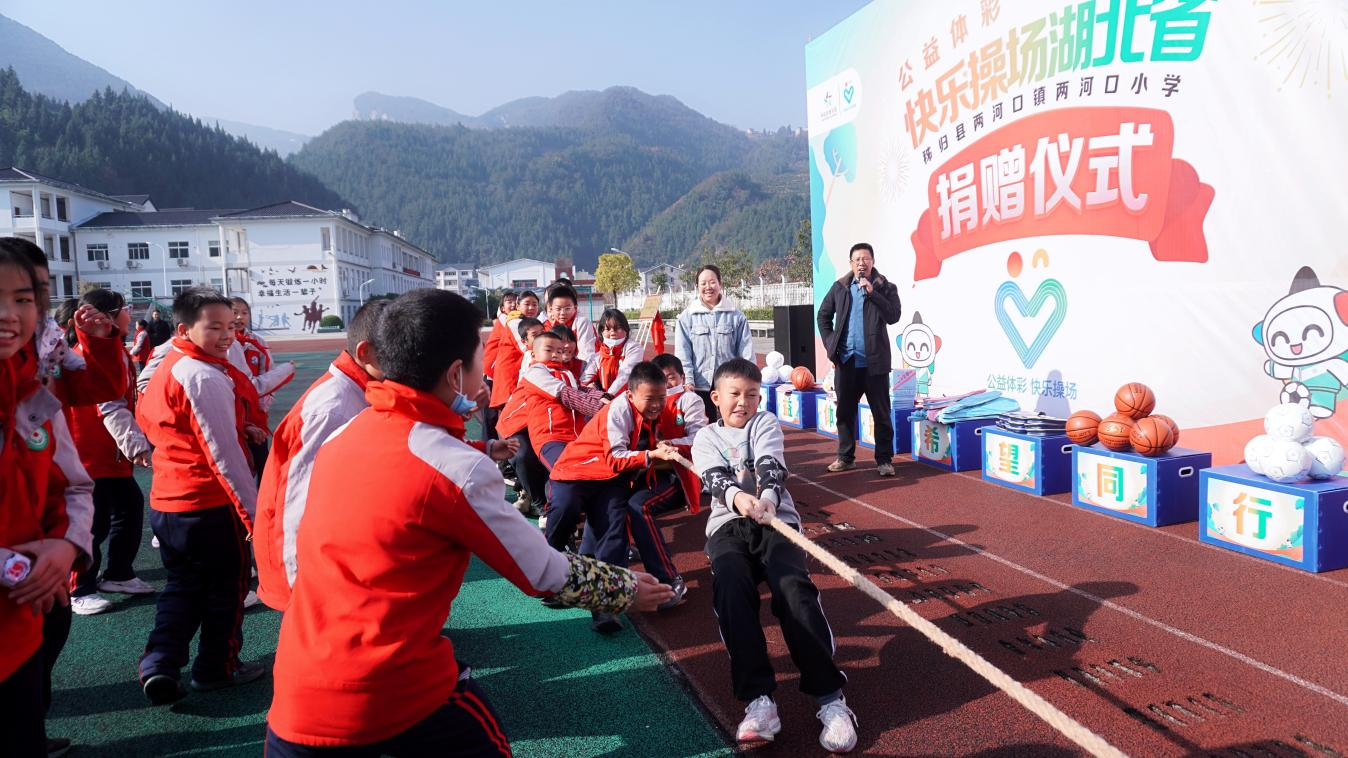 12月26日,冬日暖阳照耀着秭归县两河口镇两河口小学的操场,“公益体彩·希望同行”——“快乐操场”公益项目捐赠仪式在此温情举行,为这所乡村学校带来了丰富的体育器材和欢声笑语。