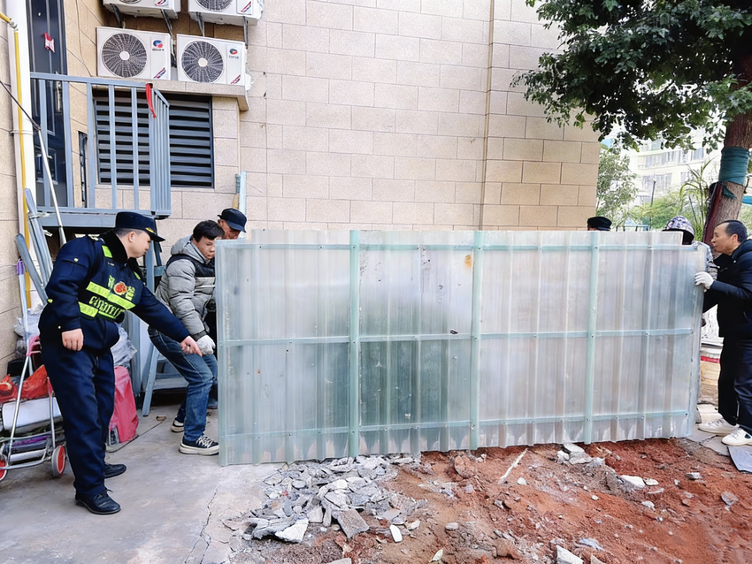 湖北日报客户端讯(通讯员 蒋文)为深入贯彻落实全县“迎双节”城乡环境提升暨违法建设专项整治行动部署,紧扣“干干净净迎双节、清清爽爽过新年”目标,近日,黄梅县城市管理综合执法大队聚焦小区违法建设乱象,精准发力、重拳整治,对中港水木学府小区内9处占用绿化用地的违规搭建开展集中拆除行动,以实际行动还原小区绿色本色,保障小区公共权益。