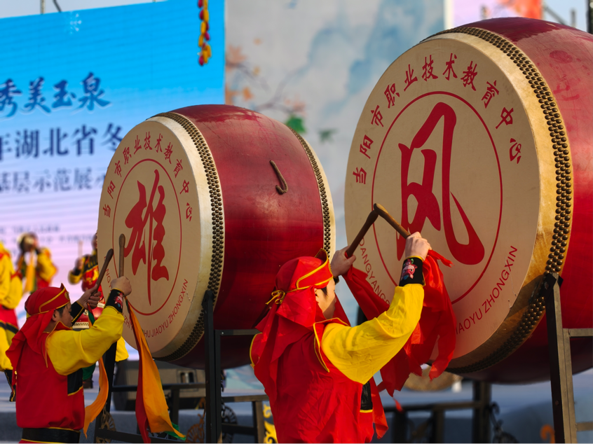 上午 8 时 45 分,当阳非遗长坂坡战鼓的雄浑节奏率先打破冬日宁静。当阳市职教中心学子们手持鼓槌,起落间再现三国古战场的豪迈气概,为活动暖场造势。随后播放的《谁敢在关公面前耍大刀》《让世界听见当阳》两部宣传片,以光影勾勒出当阳 “忠义文化” 与现代活力的双重底色。