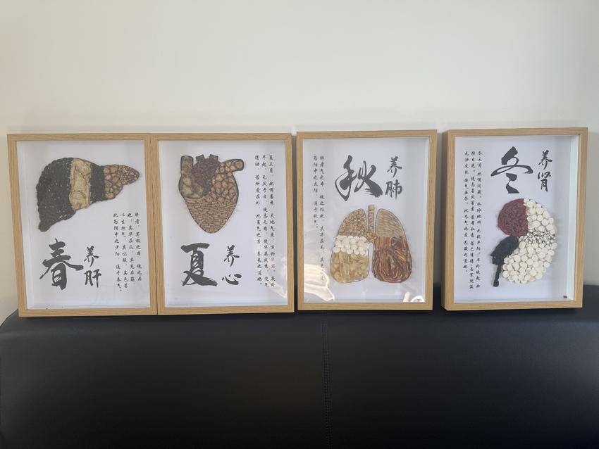 作品主题丰富,既有对《黄帝内经》等经典的视觉化诠释,也有对中医养生智慧的创意表达。例如“春夏秋冬”系列,用不同药材对应四季,形象展示中医顺时养生的理念。