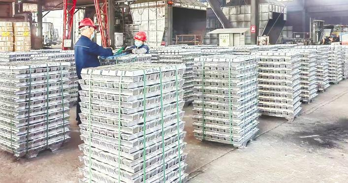 湖北灵龙铝业公司的工人正在查看生产的铝锭情况。(受访单位供图)