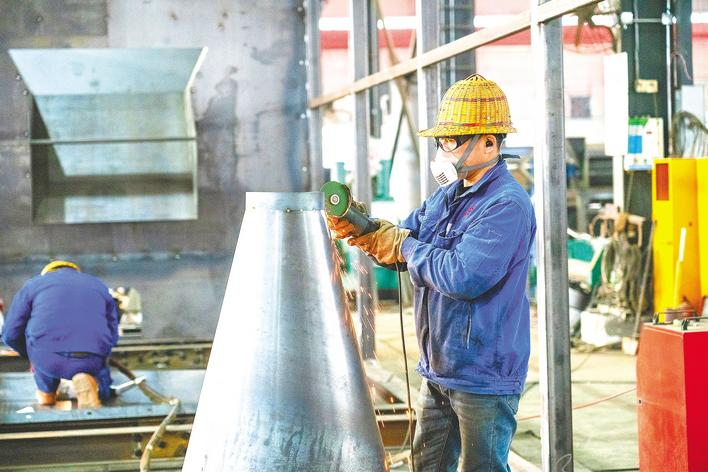 湖北保绿特环保设备有限公司工人正在全力赶制订单。 (湖北日报全媒记者 王欣 通讯员 蔡青阳 摄)