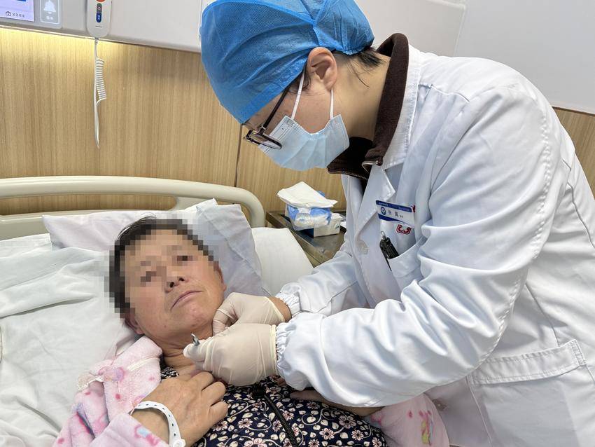 为了保障患者手术安全,甲乳外科申请全院会诊,术后,护理团队考虑到患者无法表达不适,护士们定时巡查病房,通过观察患者的表情、手势以及生命体征变化,判断其身体状况,及时调整护理方案。从伤口换药、饮食指导到康复训练,每一个环节都细致入微。在医护人员的精心照料下,李某恢复良好,颈部压迫症状完全缓解,饮食和呼吸恢复正常。