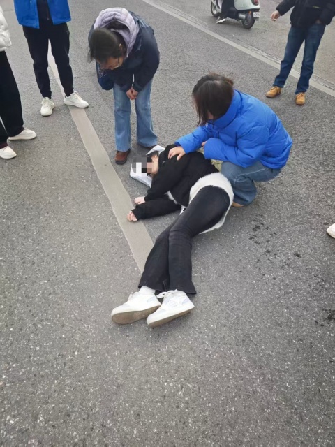 “不好,有人晕倒了!”12月30日上午11时许,驾车经过江夏区谭鑫培大道万豪世纪天街小区门口的舒斯文,看见路边一位骑黑色电动车的女孩身体摇晃了几下,随后歪倒在地,一动不动。舒斯文心头一紧,立即靠边停车,快步跑回约150米外的现场。他先扶起电动车锁好,并将钥匙放入女孩的挎包中。仔细查看时,发现侧卧在地的女孩面色苍白、嘴唇无色。此时,多位热心市民也围拢过来,有人拨打报警电话,有人呼叫急救,还有路人轻轻拨开女孩嘴唇,发现含着一颗糖,推测可能是因低血糖导致晕厥。