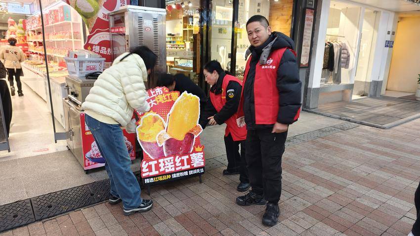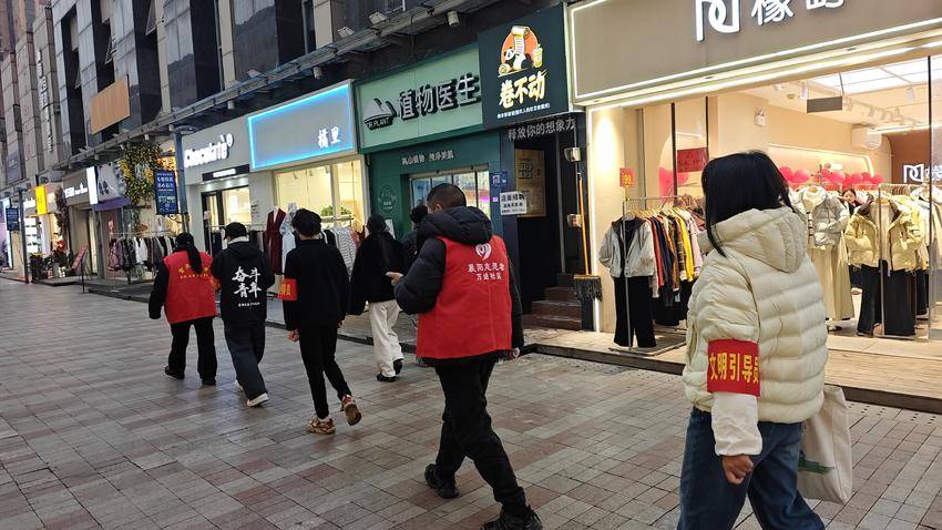 活动中,身着红马甲的商户志愿者们化身文明劝导员,沿着金街商铺逐一巡查。针对个别商户乱扔垃圾、违规占道经营等影响街区环境秩序的行为,志愿者们耐心进行劝导,引导商户自觉落实“门前三保”责任,共同维护整洁有序的经营环境。