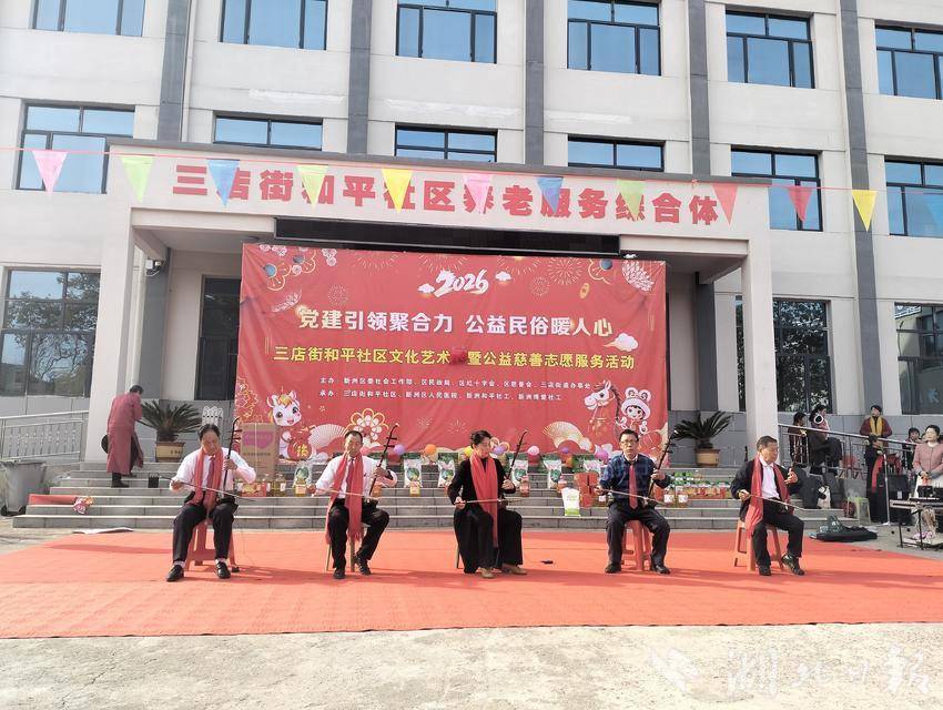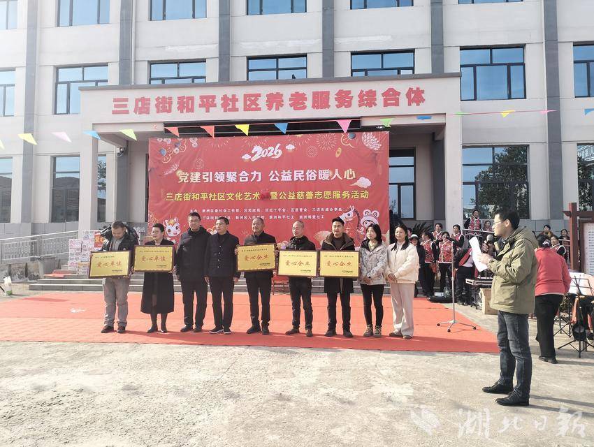 12月29日,新洲区三店街和平社区户外广场人头攒动、热闹非凡,一场以“党建引领聚合力·公益民俗暖民心”为主题的社区文化艺术活动暨公益慈善志愿服务活动在此盛大举行。活动通过公益服务、文化展演、民俗体验等多种形式,为社区居民带来了一场丰富多彩的盛宴。