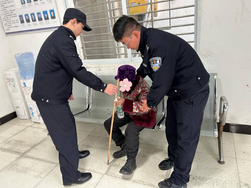 面对焦急又迷茫的老人,值班民警立即上前,一边温和地安抚其情绪,一边细致询问情况。通过仔细查看老人随身物品,民警在其手机中找到了家属的联系方式,并迅速与其女儿取得联系。电话那头,家属得知老人安然无恙,连声道谢,并表示将立刻从艾家村赶来接回。