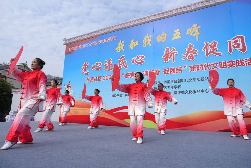 湖北日报客户端讯(通讯员 汪海燕)12月26日下午,在五峰土家族自治县渔洋关镇桥河社区石岭小区的民族运动健身广场上,一场洋溢着团结与欢庆气氛的“感党恩 迎新春 促团结”新时代文明实践活动成功举办。此次活动由渔洋关镇新时代文明实践所、桥河社区工会联合会等单位主办,得到了五峰总工会的悉心指导与大力支持,成为工会组织深度参与基层治理、服务凝聚职工群众的生动实践。