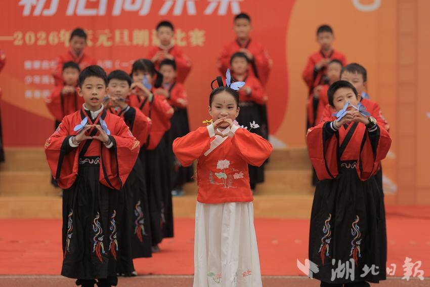 湖北日报客户端讯(通讯员 向诗)岁序更迭,新元肇启。12月29日,唐家湾中小学庆元旦朗诵比赛正式拉开帷幕,为期两天的赛事里,校园处处洋溢着喜庆祥和的迎新氛围。
