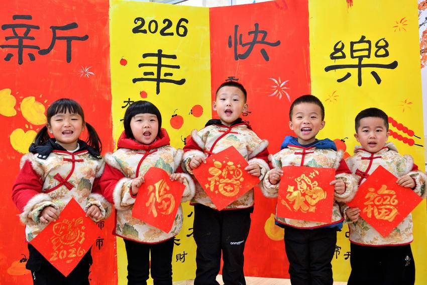 “我今天印了‘福’字,我很开心,祝大家元旦快乐!”幼儿柳清玥捧着自己的作品,脸上洋溢着灿烂的笑容。