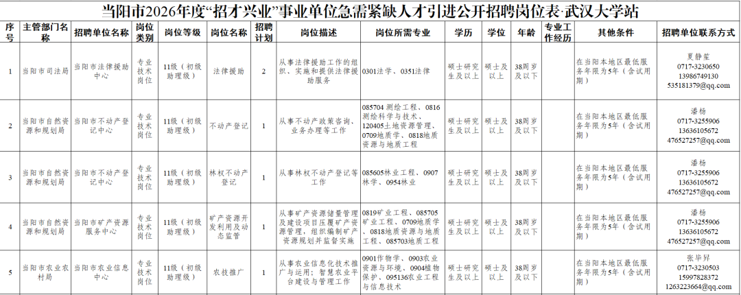 1.当阳市2026年度“招才兴业”事业单位急需紧缺人才引进公开招聘报名表(考试报名平台下载);