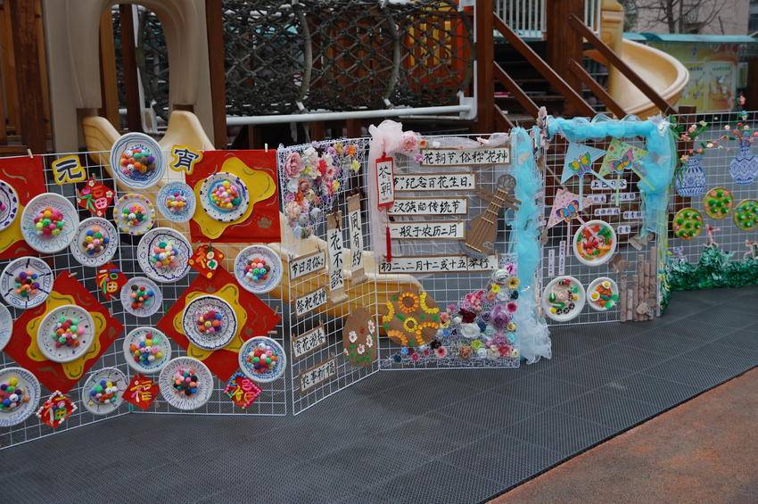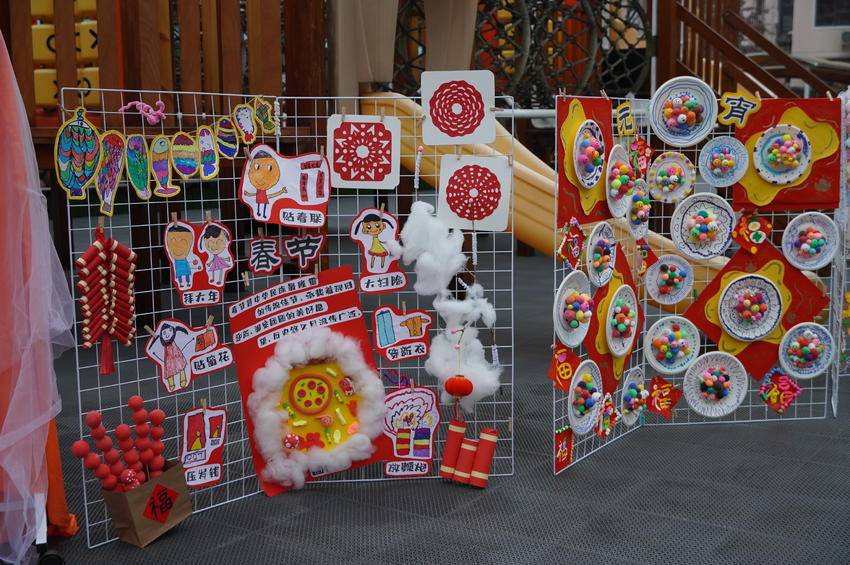 民俗庙会布展立足儿童视角,围绕马年文化与十二个传统节日深度结合,分别营造冬至、腊八、春节、元宵、花朝、上巳、清明、端午等幼儿手工作品展,让幼儿在沉浸式体验中读懂传统,爱上民俗。