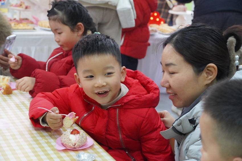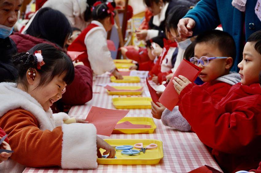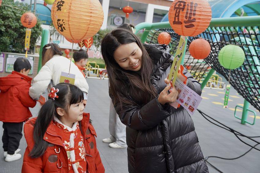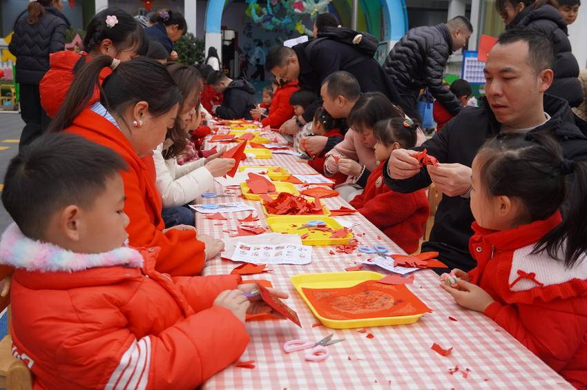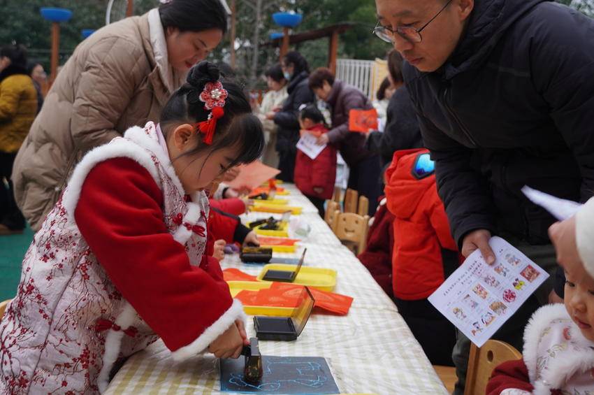 在活动中幼儿与家长手持游园券穿梭于各个民俗游戏中,参与写福字、黏土创作、折纸、拓印、骑竹马等活动,幼儿与家长收集的不仅是游戏印章,更是满满的民俗记忆与新年福气,同时还品尝到了宜昌本地特色小吃和传统糕点,沉浸式体验到了民俗乐趣。