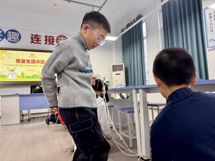 湖北日报客户端讯(通讯员 胡静)为深入贯彻“五育并举”教育方针,弘扬劳动精神,培养学生的劳动意识,提升学生动手能力,2025年12月31日上午,宜昌市伍家岗区杨岔路小学“巧手大比拼 劳动促成长”劳动技能竞赛如期开展。全校学生踊跃参与,以劳赋能、以技展才,在动手实践中锻炼技能,在友好竞争中感受劳动乐趣,展现出朝气蓬勃、热爱劳动的校园风貌。
