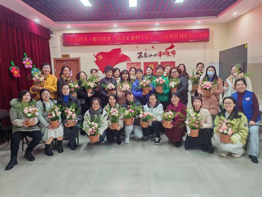 十九街社区工会联合武汉沛麟运动康复中心共同举办了“巧手暖人心”插花活动,企业职工们学习插花、交流心得,有效舒缓了压力,增进了情谊。