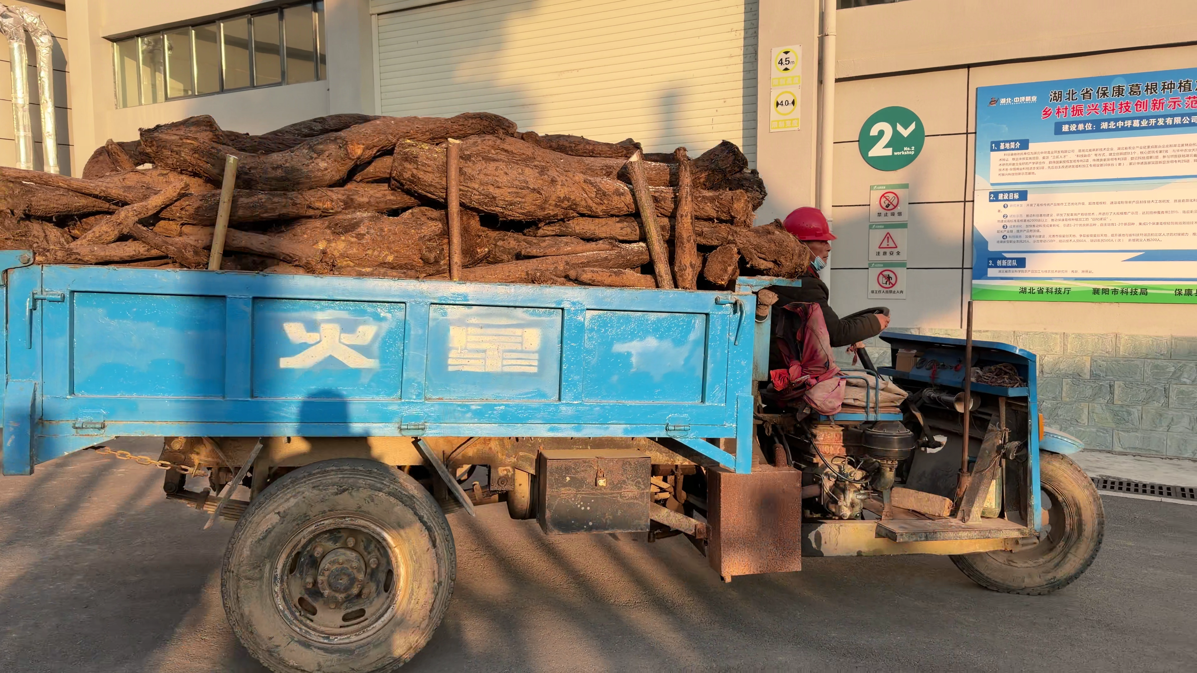 村民将采挖的葛根运送到生产车间。(湖北日报通讯员 王满 摄)