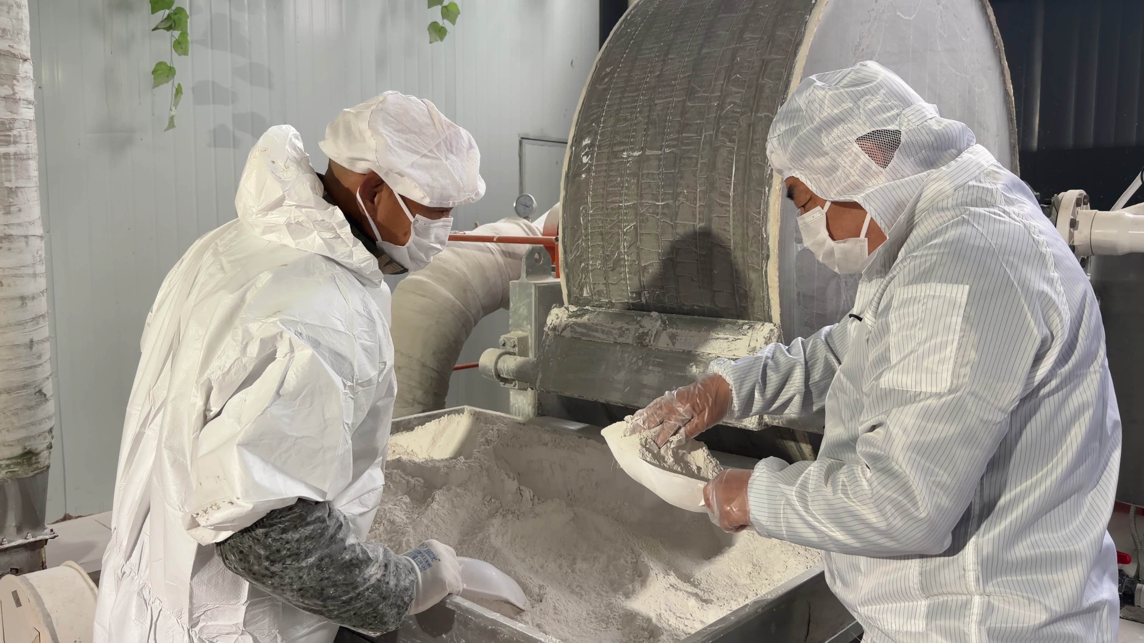 绿珍葛业生产车间内,工人在查看刚刚生产出来的葛根精粉。(湖北日报通讯员 王满 摄)