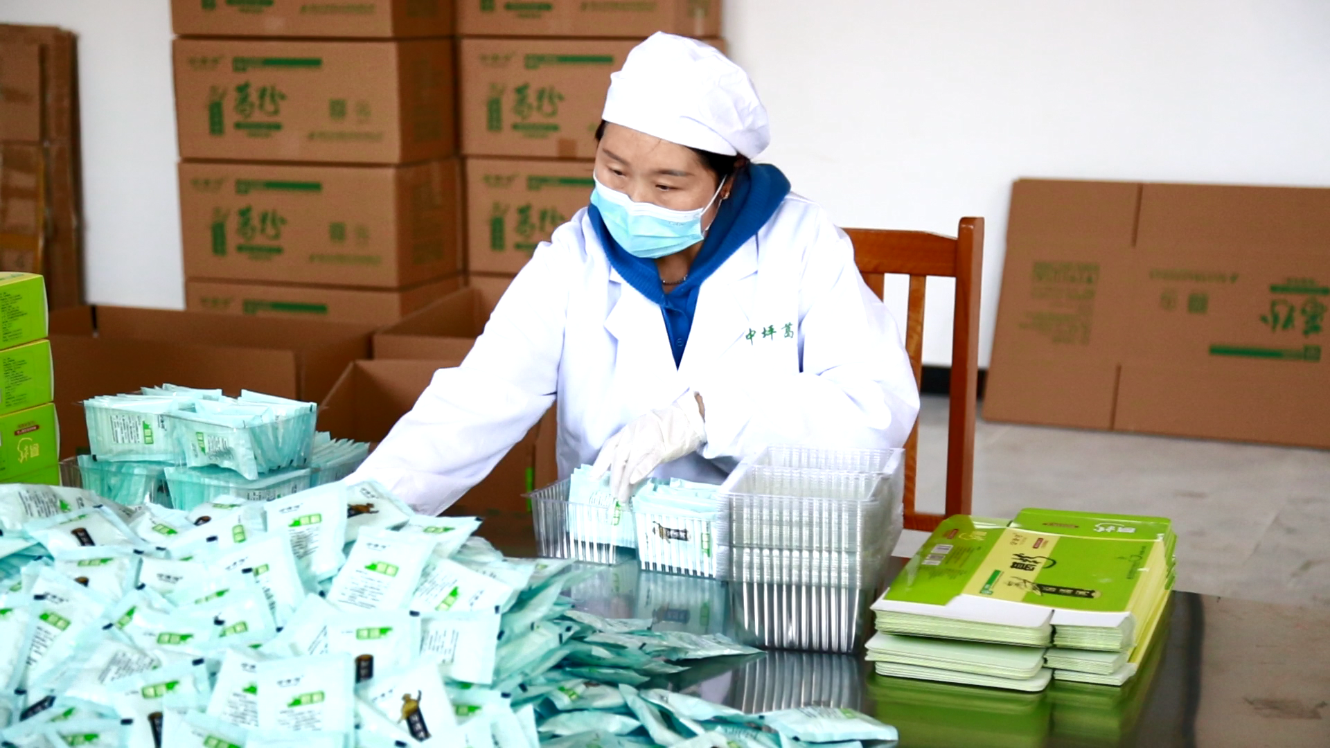 与此同时,50公里外的马桥镇中坪葛业包装车间内,工人们正忙着将一箱箱葛粉打包发货。