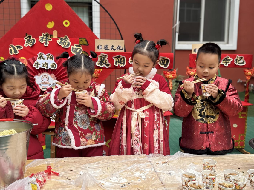 湖北日报客户端讯(通讯员朱红、莫迎雪、徐岑涵)为深化绿色理念下的幼儿劳动教育实践,将本土非遗文化与劳动教育有机融合,襄阳市粮食幼儿园以马年元旦为契机,开展“寻味襄阳味道 传承非遗文化”主题活动,把特色美食、传统游戏与非遗手工搬进园所,让孩子们在沉浸式体验中感受传统文化魅力,践行绿色劳动理念。