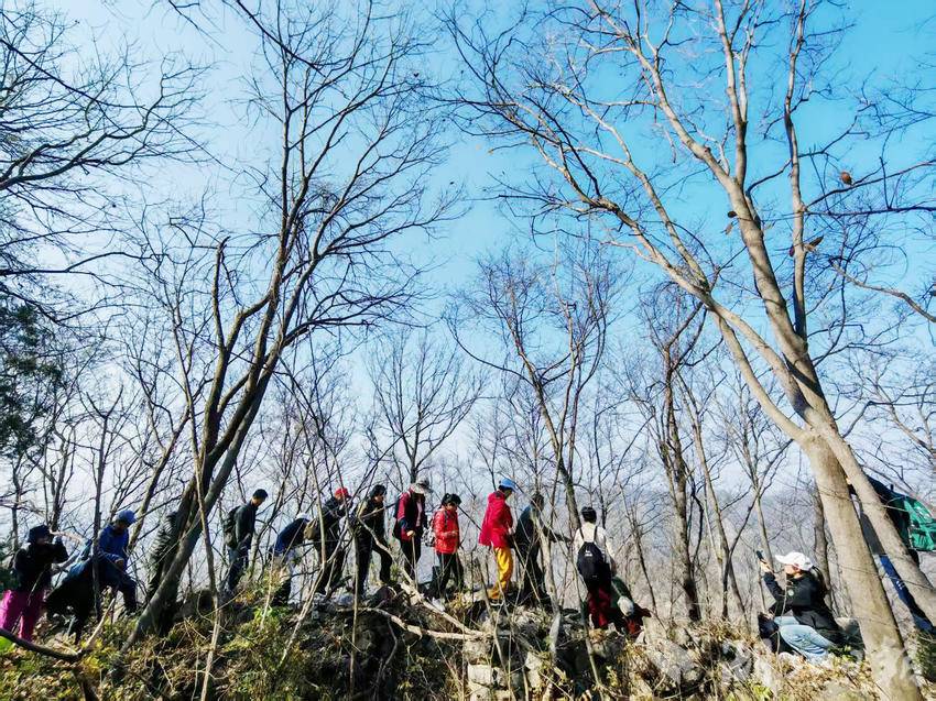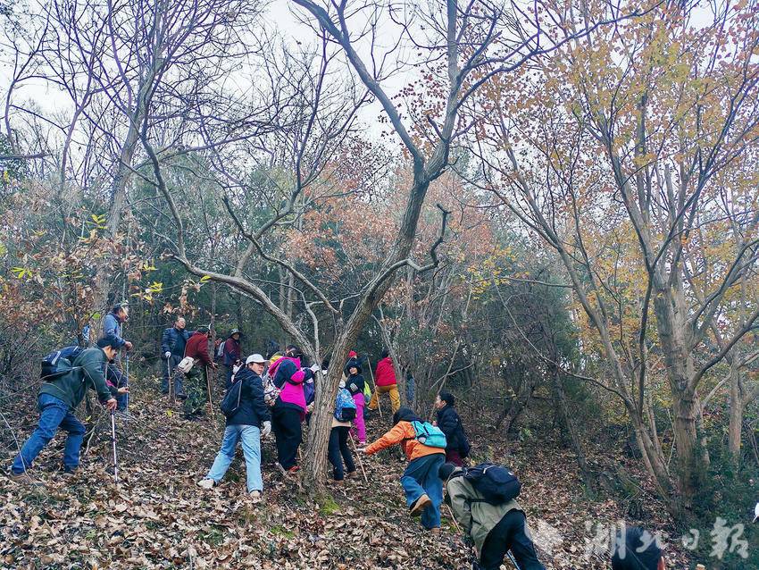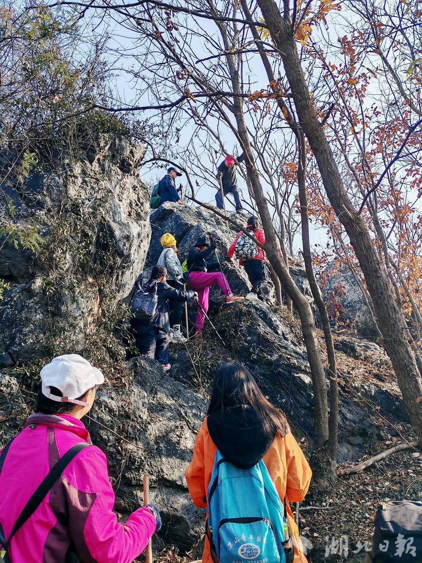 湖北日报客户端讯(通讯员黄小明)2025年12月27日,“走遍京山”户外运动团队的26名队员,走进京山市三阳镇普济寺村,徒步海拔291米的刘家寨。刘家寨因旧时当地村民躲避匪患,由刘氏人家在山顶修筑石寨而得名。寨体南北长约700米、宽约300米,面积0.21平方千米,如今杂树丛生、乱石嶙峋。