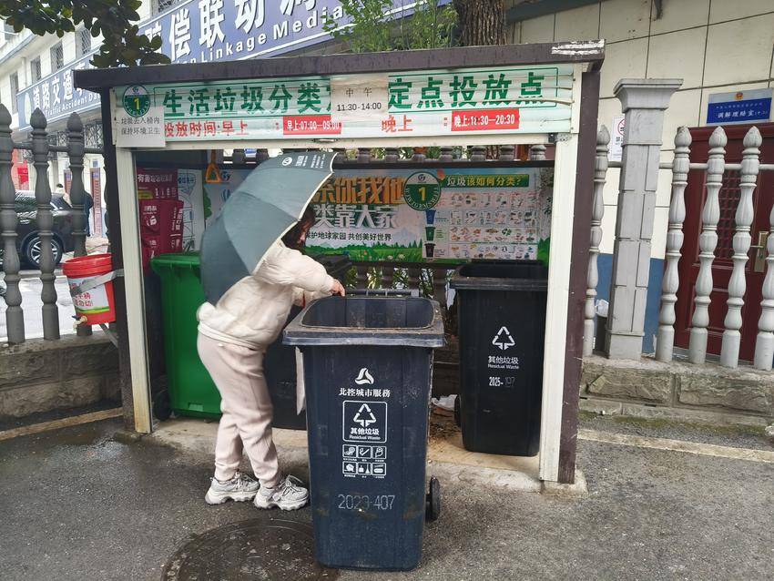 “周师傅不仅每天认真督导我们分类,还主动修好了垃圾桶,真是太负责任了!”小区居民看到这一幕,纷纷对她竖起大拇指。