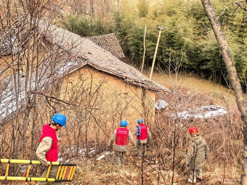 湖北日报客户端讯(通讯员代雨山)12月29日,在湖北保康县后坪镇堰塘村海拔1200多米的山岭间,薄薄一层积雪零星地点缀着蜿蜒山径。远山近树,在冬日的寒气里显出一片沉静的枯黄与萧瑟。几个身穿“鄂电红马甲”的身影,正踩着微湿的土路,走向山坳深处那栋杳无人烟的老屋。