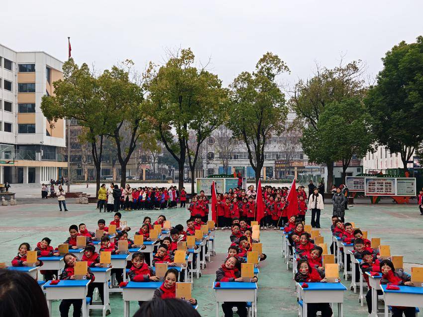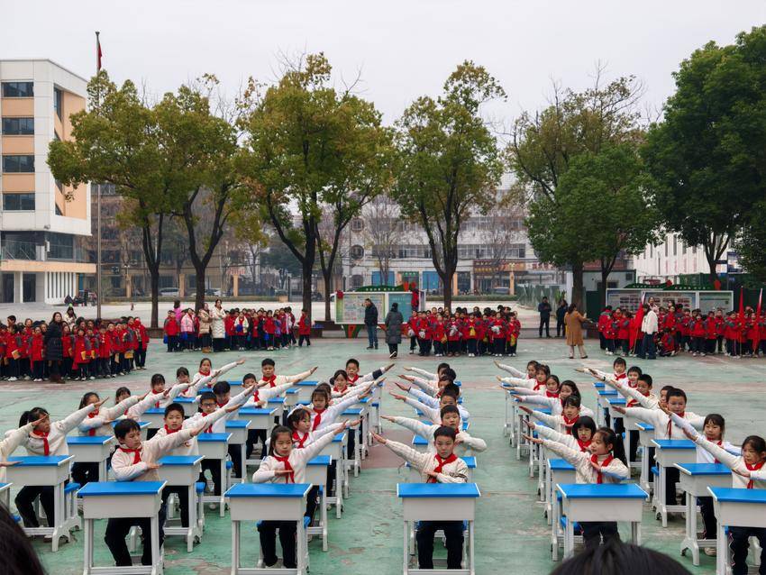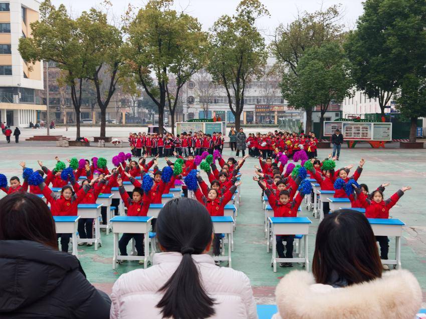 12月30日下午,校园操场上热闹非凡。孩子们端坐于蓝白相间的课桌椅前,以班级为单位依次展示:有的佩戴红领巾,手臂舒展间动作利落整齐;有的手持红色折扇、彩色花球,随着正能量音乐的节奏变换队形,鲜艳的道具与灵动的舞姿相映成趣;还有班级将学科知识融入动作编排,让课桌舞成为“动起来”的趣味课堂。场外师生与家长驻足观看,不时为孩子们的精彩表现喝彩。