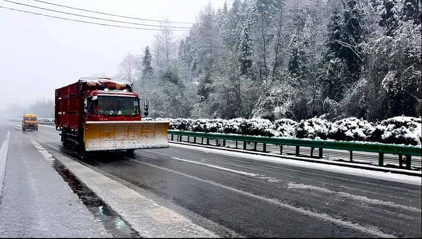 截至2026年1月1日早上8时,宜来高速除雪保畅工作共出动人员28余人次、机械24台次,累计撒布融雪剂48吨。