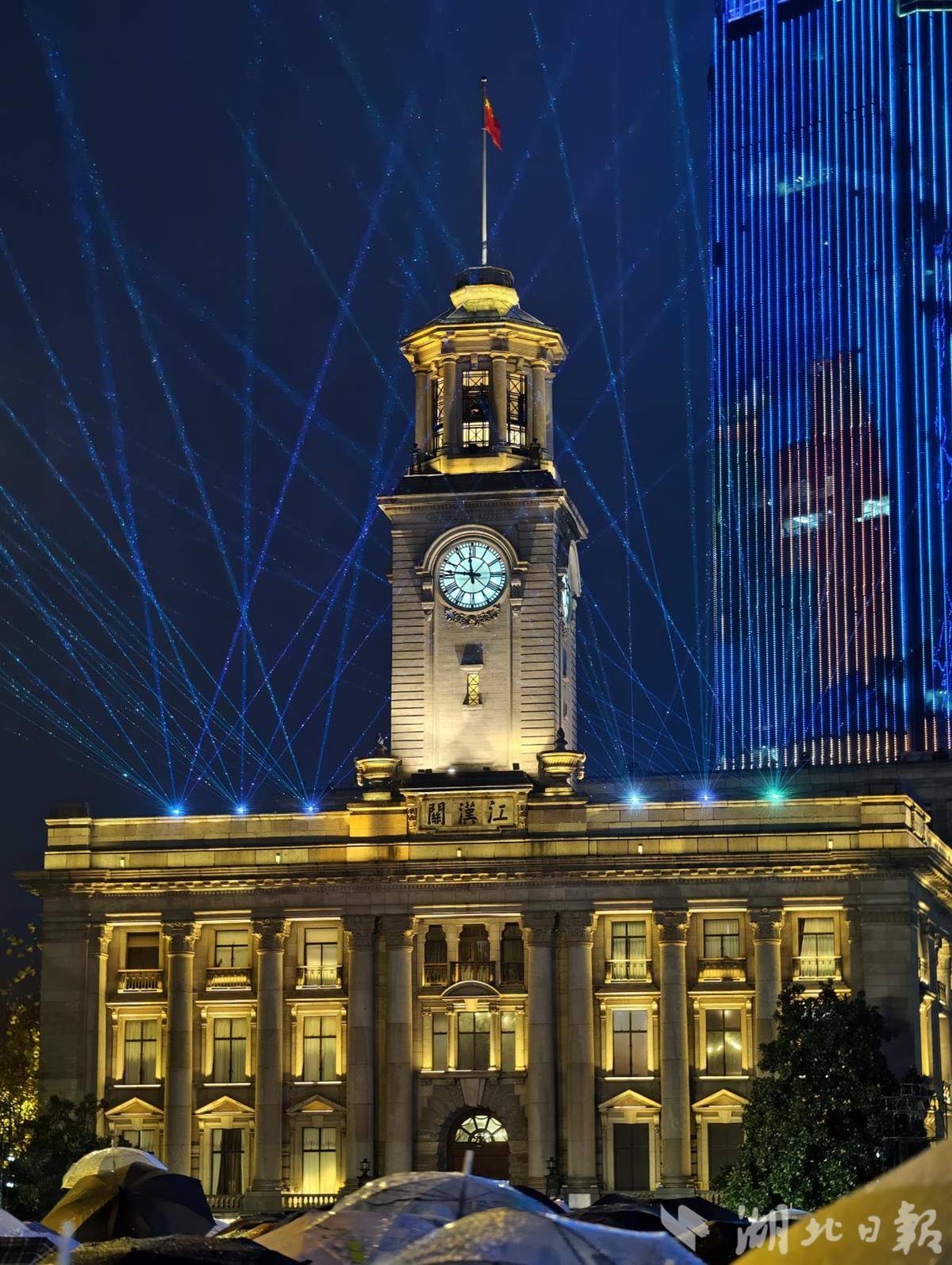 此外,今年的光影秀也迎来升级。据江汉关跨年光影秀导演葛进军介绍,激光设备数量从去年的20台增加到27台,提升画面稳定性和色彩饱和度,增强视觉表现力。同时在江汉关广场、江滩公园临时布置3组大屏,实时同步江汉关主会场的精彩时刻,扩大活动容量,进一步缓解“人挤人”难题。当跨年倒计时响起,站在百米开外也能同步感受这份新年仪式感。