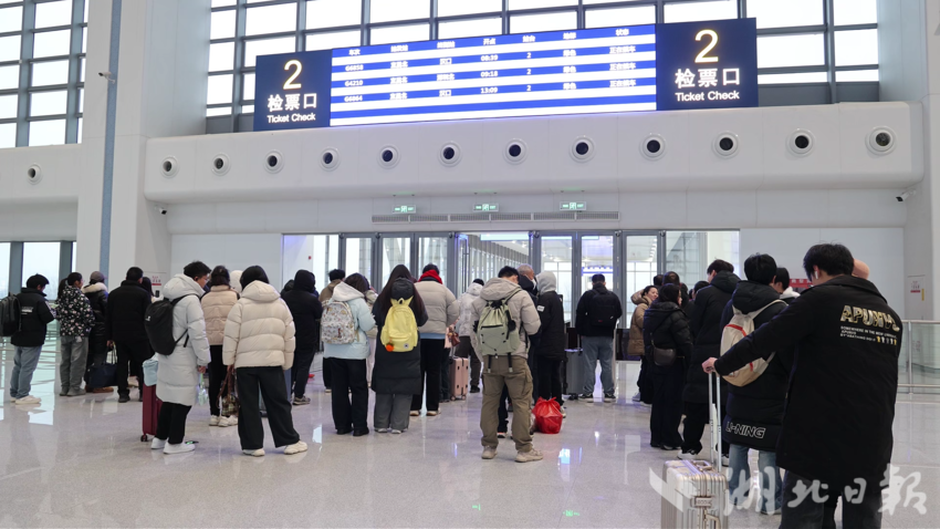 1月1日上午,汉川北站候车大厅内人流如织。携带行李的旅客在检票口前有序排队,工作人员有序引导客流,电子屏实时更新列车信息,各项服务设施运转顺畅。不少旅客趁着小长假出行,体验到了新站带来的便利。