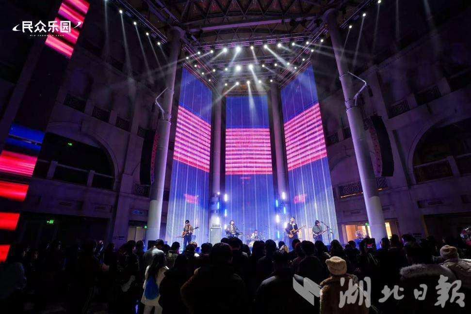 湖北日报讯(记者冯袁玥、通讯员翟星玥)2025年12月31日,武汉民众乐园举行“明天在响”音乐派对,用音乐点亮跨年夜。在沉淀了世纪风华的建筑里,历史回响与年轻乐章交织,打造一场让历史心跳与青年脉搏同频的声光巡礼。