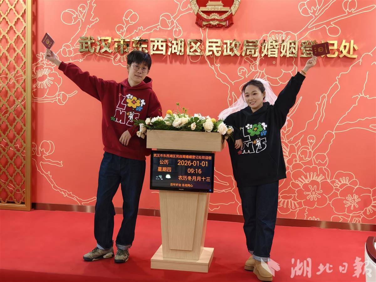湖北日报讯(记者李光正、通讯员张丽霞)1月1日,武汉市东西湖区民政局婚姻登记处以“文明婚俗润万家·家风传承启新篇”为主题,为领证的新人量身打造了一场集仪式感、教育性、互动性于一体的特色新婚活动。